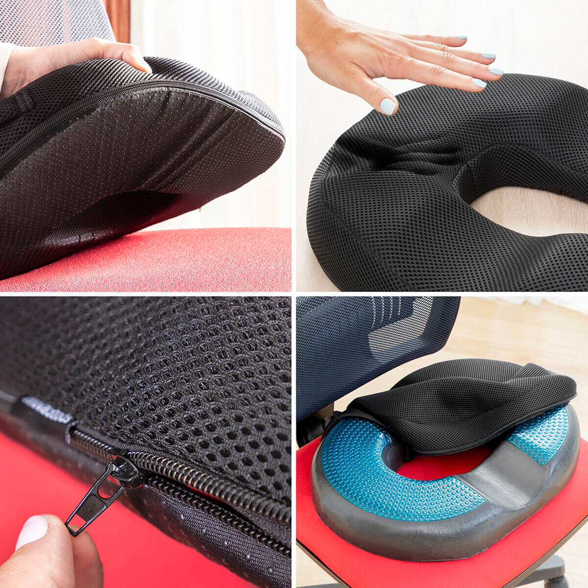 Se puede utilizar en cualquier tipo de asiento (silla, sillón, sofá, silla de ruedas, etc.), o también en el suelo para practicar yoga, meditación, etc. Ideal para usar en oficina, hogar, teletrabajo, etc. También es apropiado como cojín para embarazadas, hemorroides, ciática, antiescaras…